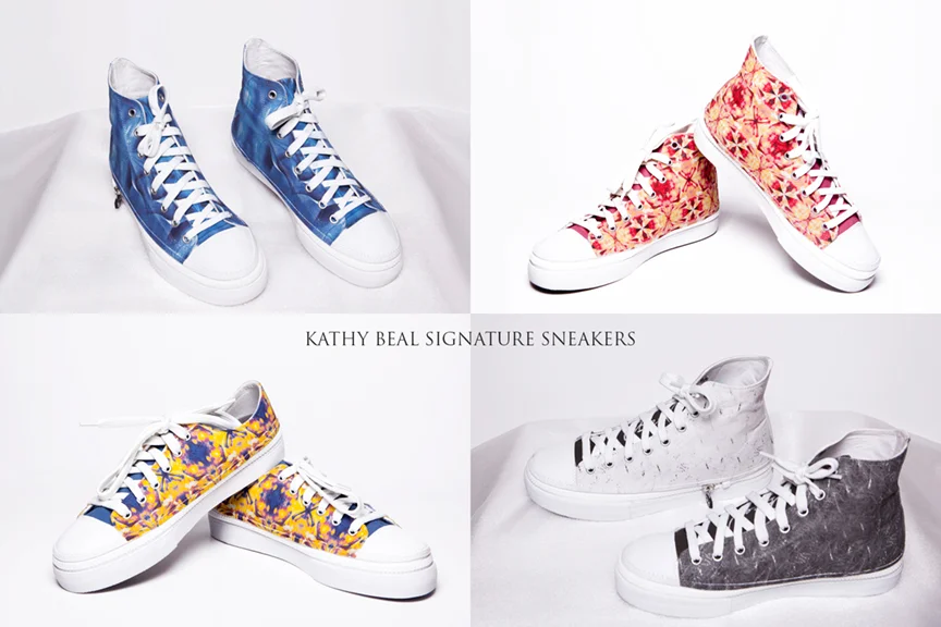 Currently available in nine classic Kathy Beal Signature designs, these sneakers come in unisex sizes, medium width.